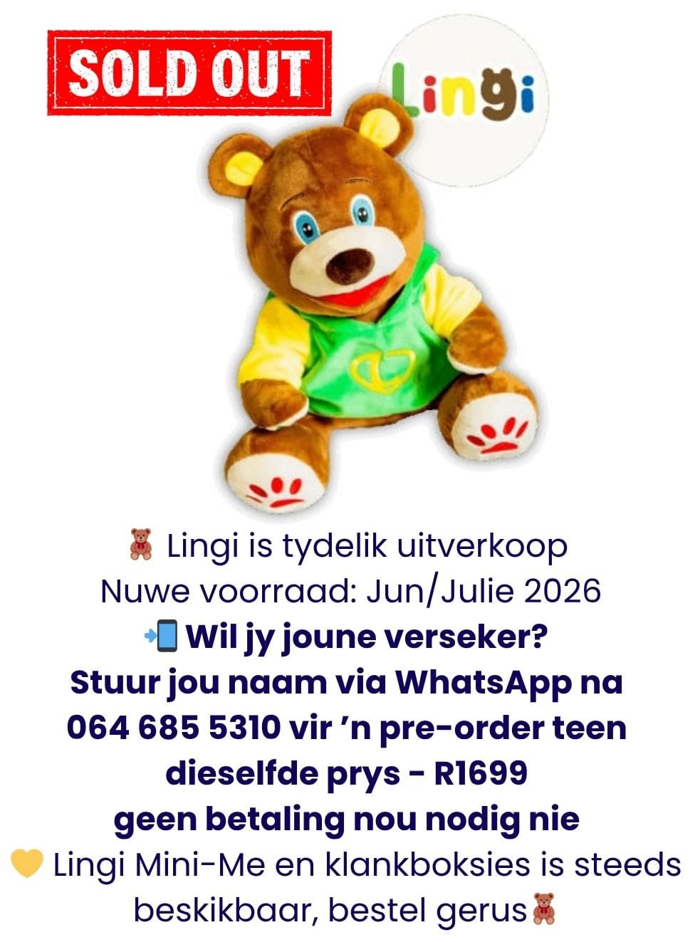 Of koop ektra klankboksies (klankalbums) vir jou Lingi mini-me aan🧸- geen rekenaar nodig nie – ons laai die klank💡